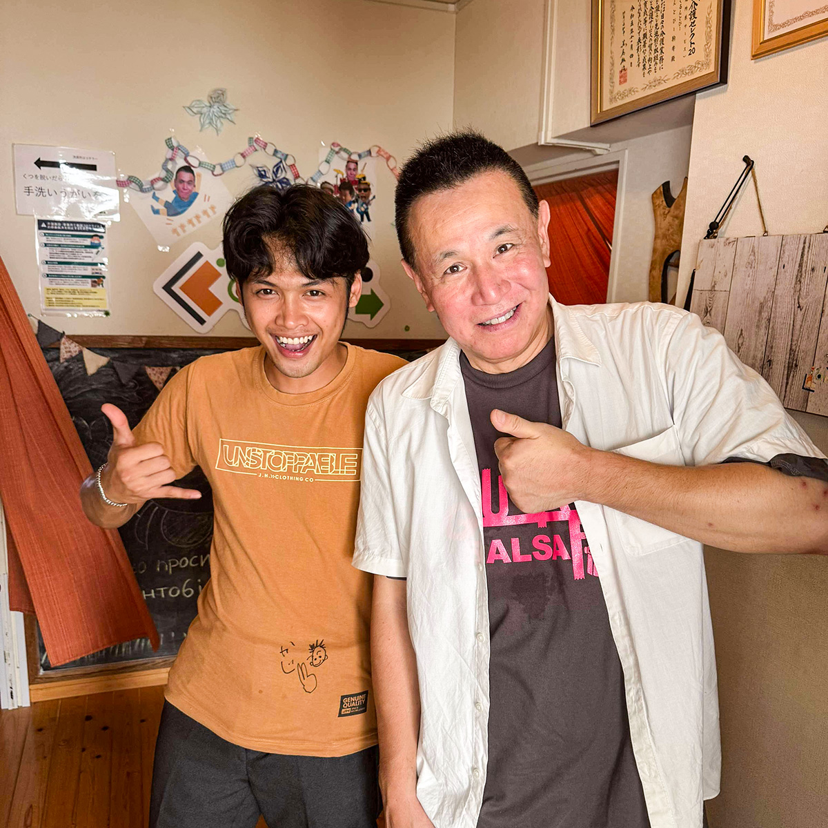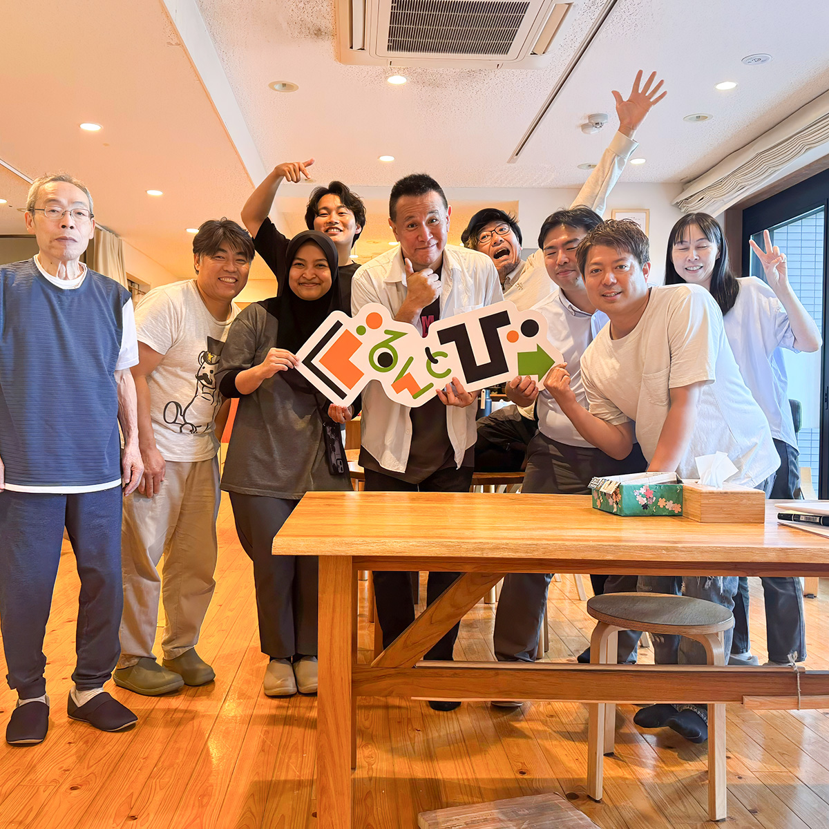 元THE BLUE HEARTS(ザ・ブルーハーツ)、サルサガムテープや音楽ワークショップで活躍するドラマー・梶原徹也さんが初めてぐるんとびーを訪問。従来の介護施設とは一線を画す、家族的で柔軟なケア、事業として成り立ちながらも、利用者一人ひとりのニーズに寄り添う姿勢に、「ショッキングだった」と率直な感想を語ります。